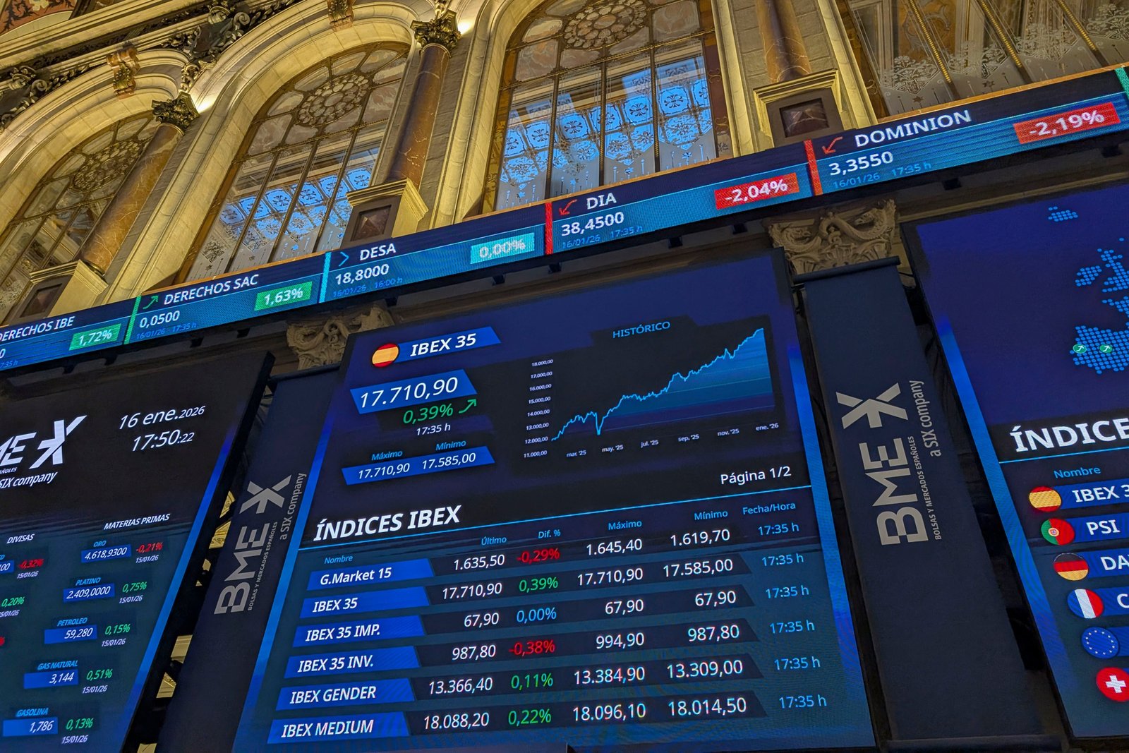 El Ibex avanza y busca los 17. 600 puntos.